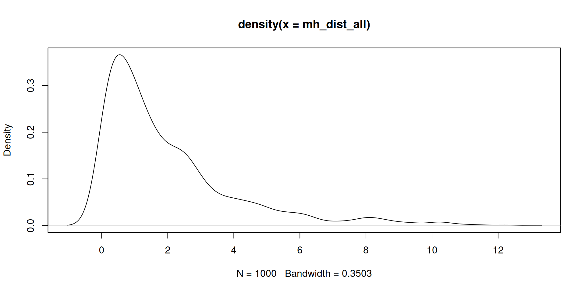 Similar to the squared error in the univariate case, we can calculate the squared Mahalanobis distance for each observed individual in the context of a multivariate distribution.