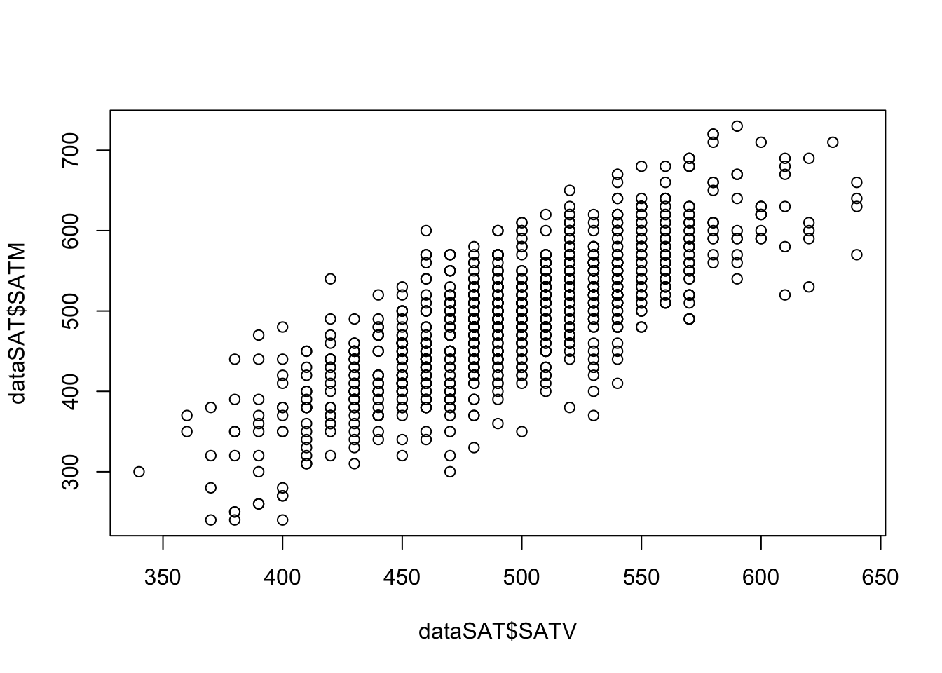 In statistics, we use \(x_{ij}\) to represent the element in the ith row and jth column. For example, consider a matrix \(\mathbf{X}\) with 1,000 rows and 2 columns: