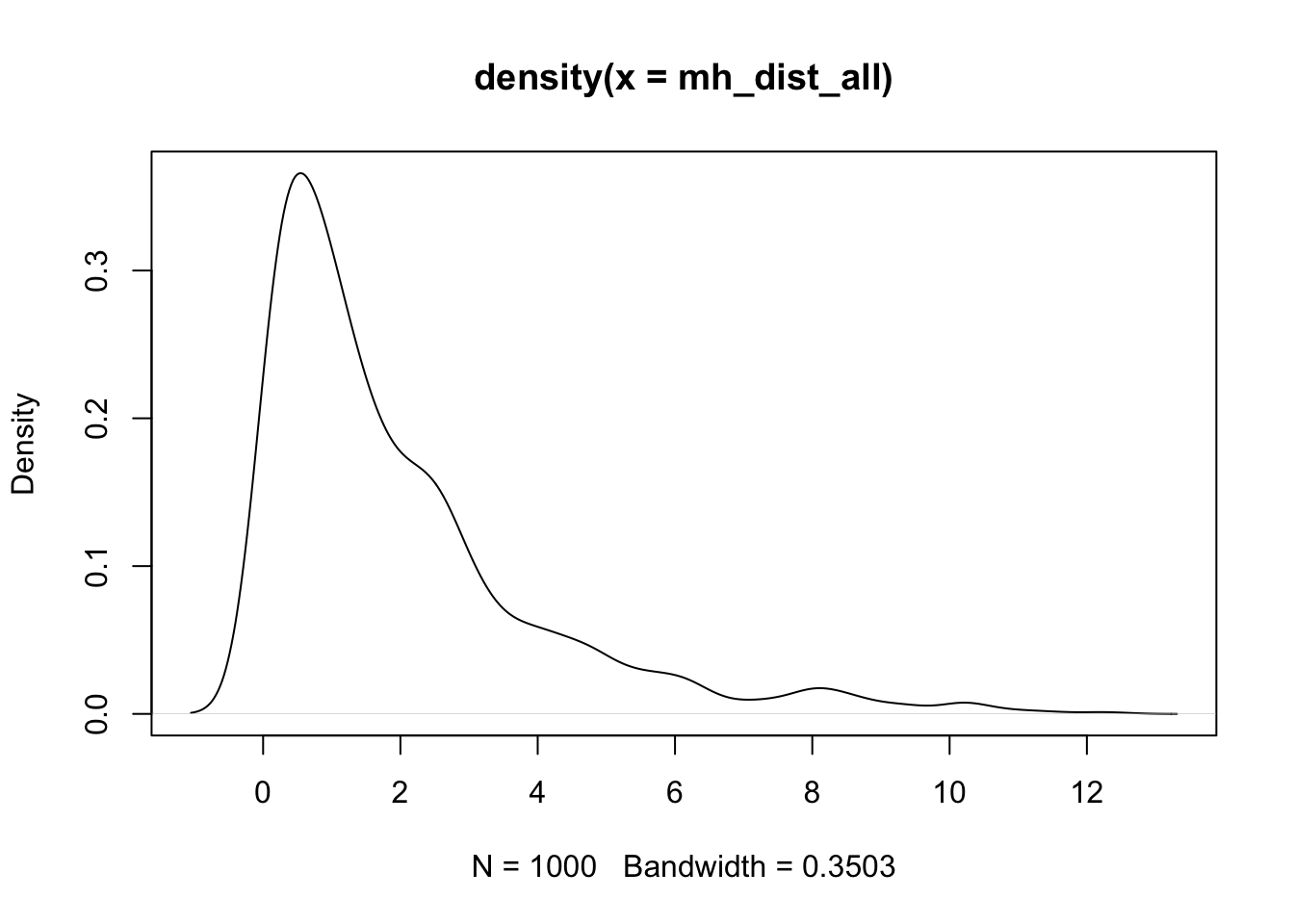 Similar to the squared error in the univariate case, we can calculate the squared Mahalanobis distance for each observed individual in the context of a multivariate distribution.