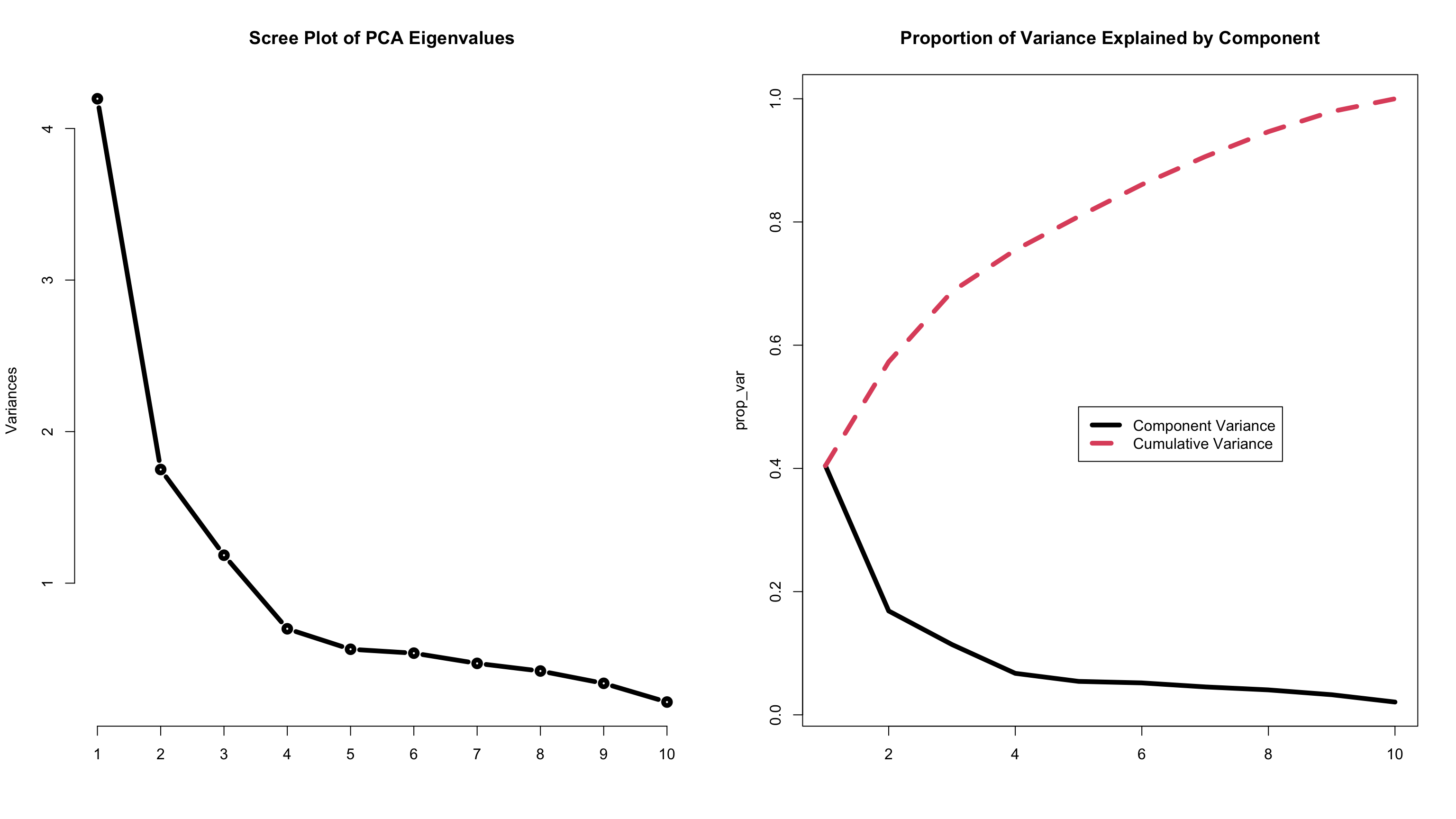 eigen()function to obtain eigenvalues and eigenvectors of a square matrix (e.g., a correlation matrix).