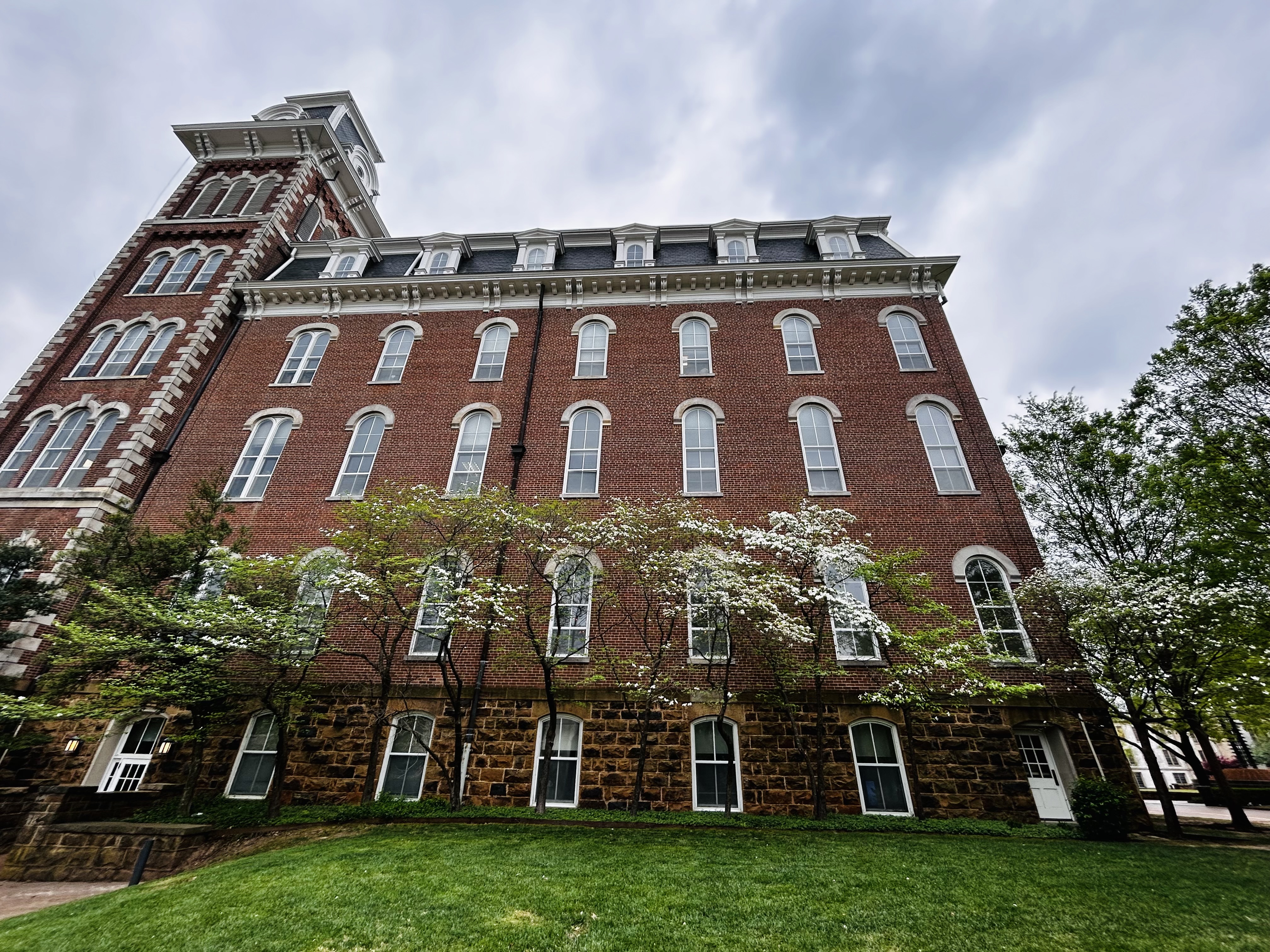 又称多花狗木, 大花山茱萸。大花四照花(Cornus florida)是山茱萸科的北美种。根据维基百科,此花是北卡和维吉尼亚的州花。早春时节,有四片白色苞叶其中有小小的花簇,通常在四月初开花。在校园的old main旁边就栽种了三四颗狗木树(见 图 2)。