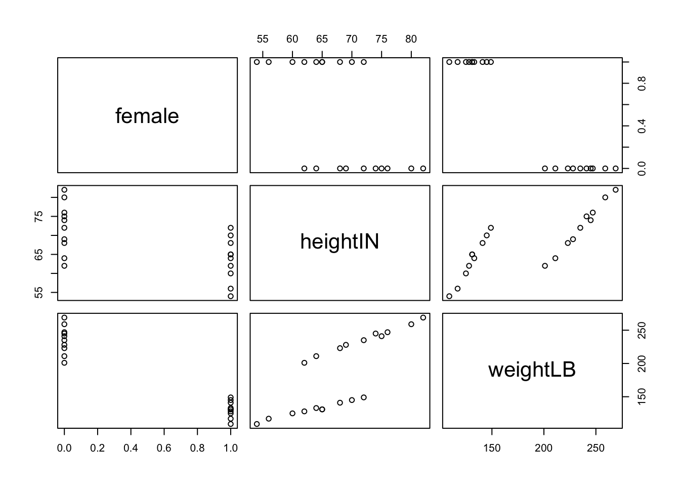 dataSexHeightWeight # You should find data named "dataSexHeightWeight" already loaded id sex heightIN weightLB