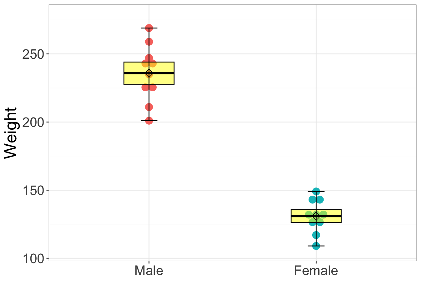 - Total explained variances in weight by height and gender: Multiple R^2 of Model 5