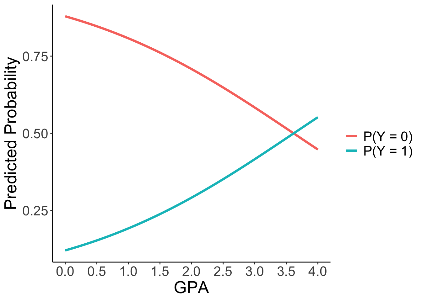 as.data.frame(cbind(GPA = new_data$GPA3+3, P_Y_0 = Pred_prob[,1], P_Y_1 = Pred_prob[,2])) |>