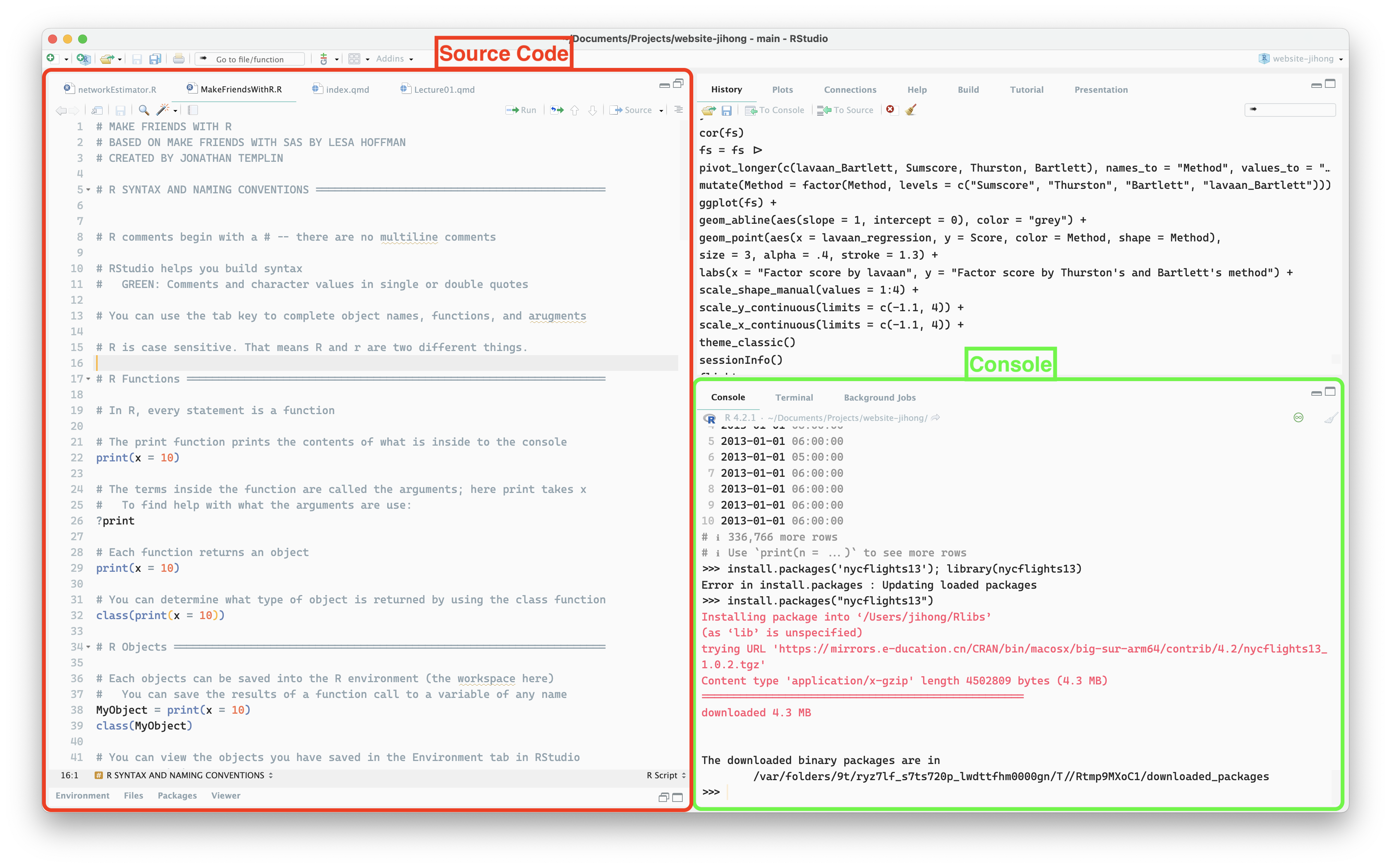 install.packages("remotes") # if you did not install the remotes package before library(remotes) remotes::install_github("JihongZ/ESRM64103", force = TRUE)