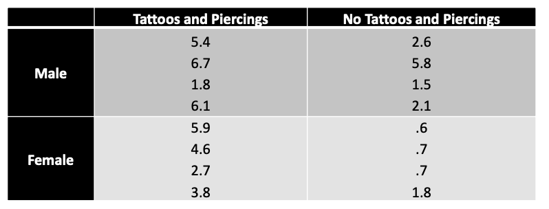 - Factor Aโs Main effect: โControlling Factor B, are there differences in the DV across Factor A?โ